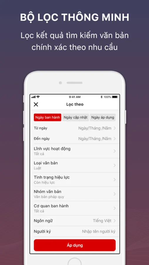 - Các văn bản cũng được chỉ rõ Ngày ban hành, Ngày có hiệu lực, Ngày hết hiệu lực giúp khách hàng áp dụng văn bản một cách chính xác nhất.