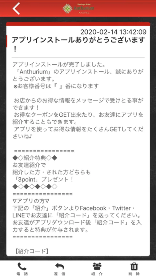 AnthuriumのアプリをSNSを通じてお友達に紹介する事ができます。