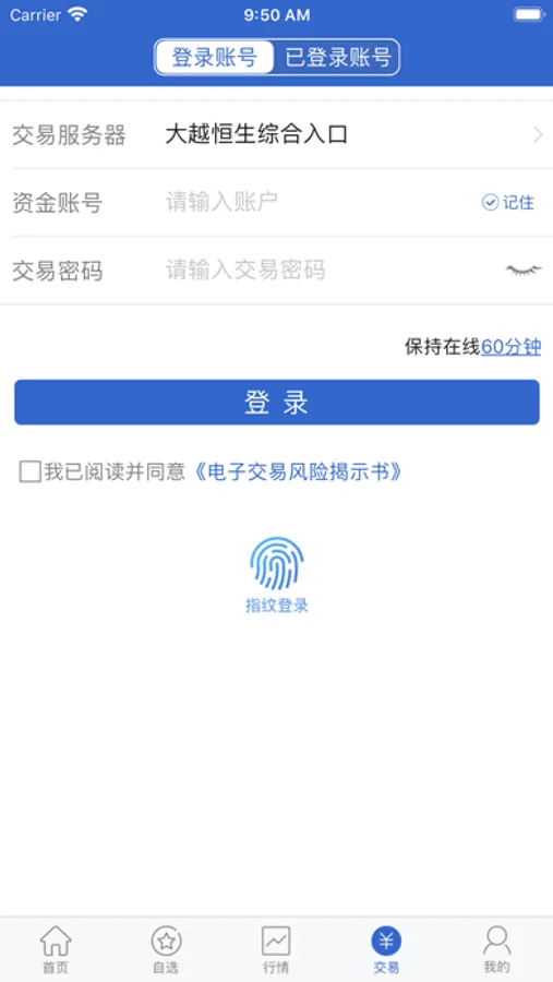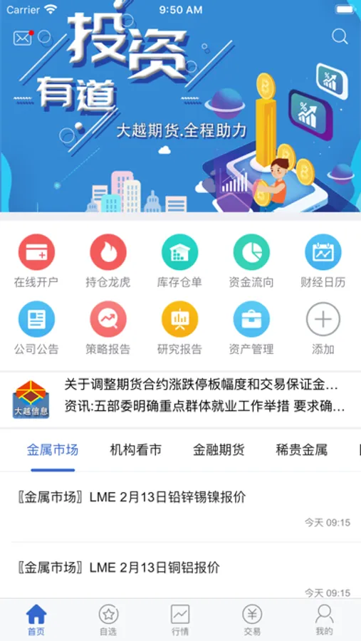 大越博易是一款集行情、交易、资讯为一体的移终端软件,支持期货期权行情交易、期货开户、信息咨询等功能,界面简洁,功能齐全。系统支持恒生UF2.0,CTP系统登录 交易。
