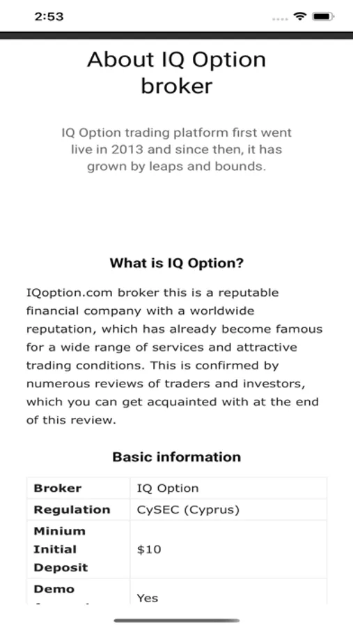 Try trading option market app with our demo account. Use virtual funds and get experience as an Option Broker for free. IQ Option requires a little minimum deposit and new traders can start by just depositing $10 to use a live account.