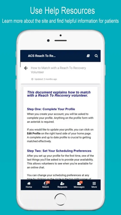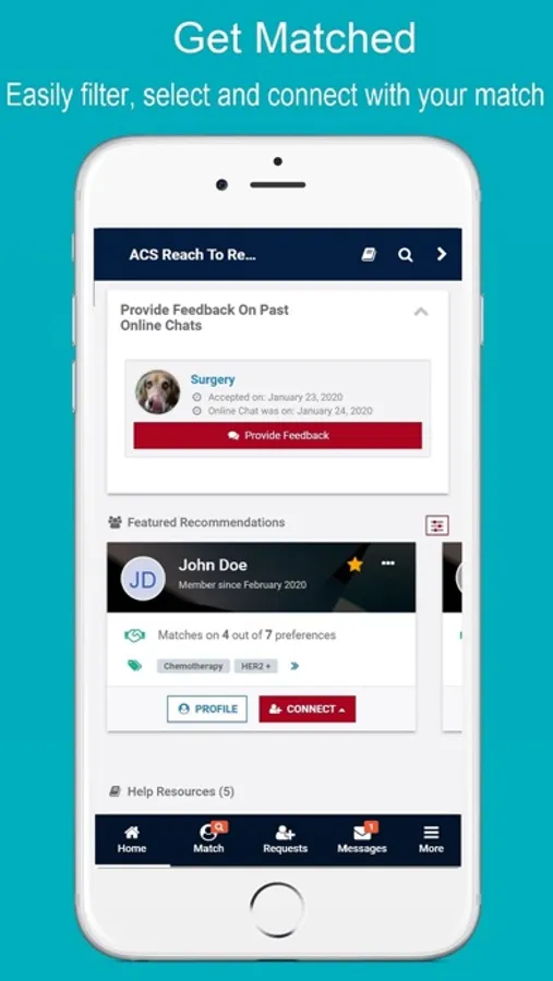 A peer’s preferences are compared to the volunteer profiles. For example, if a peer would like to chat with a volunteer who had a mastectomy, they can select that in their preferences. Peers can review the profiles of the volunteers who best match their preferences.