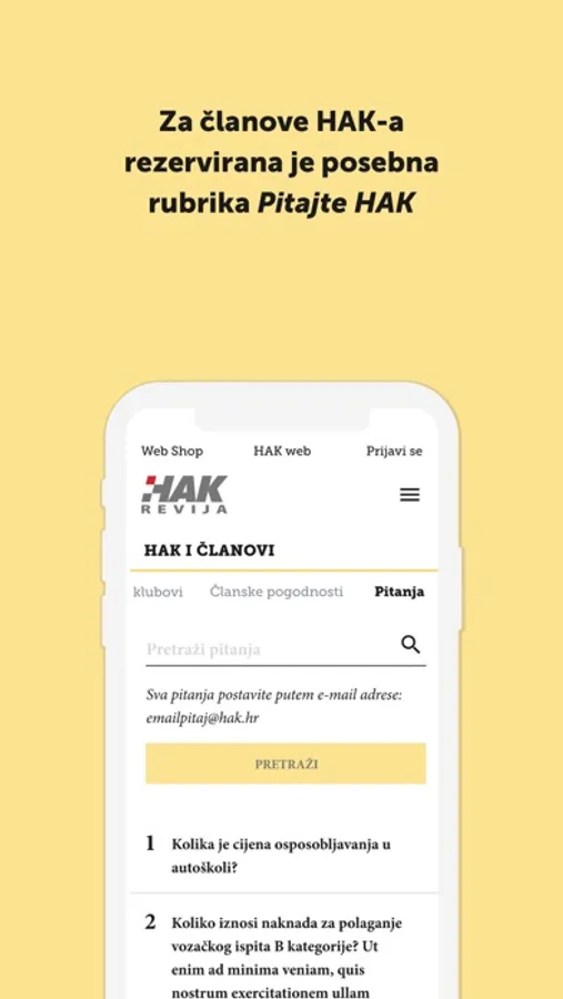- Za članove HAK-a rezervirana je posebna rubrika Pitajte HAK