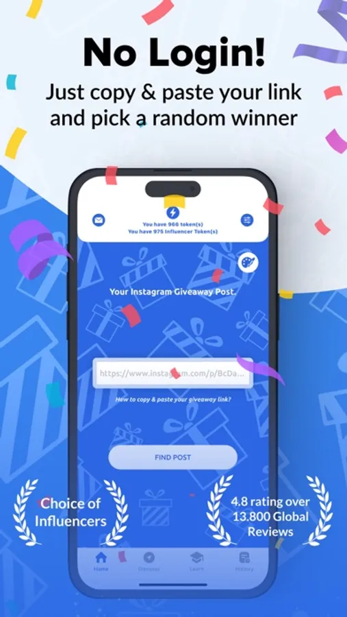 • Giveaway app with the most positive reviews in US Store and Globally.