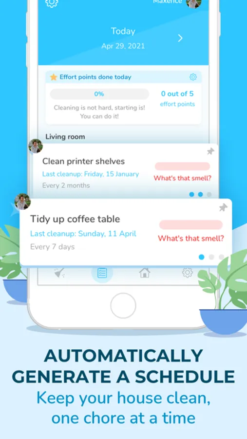 - Automatically generate a daily cleaning schedule for each member in your home;