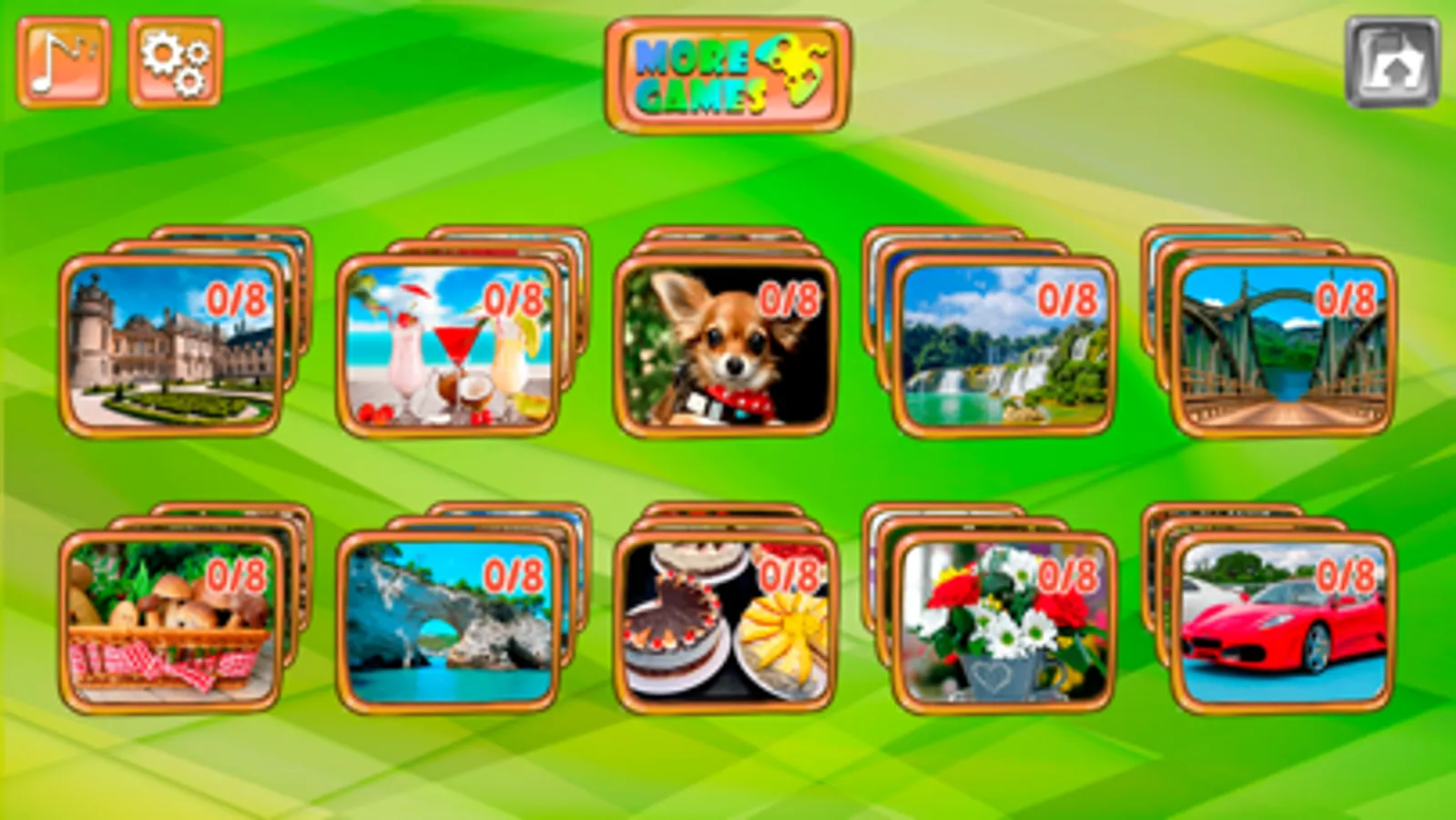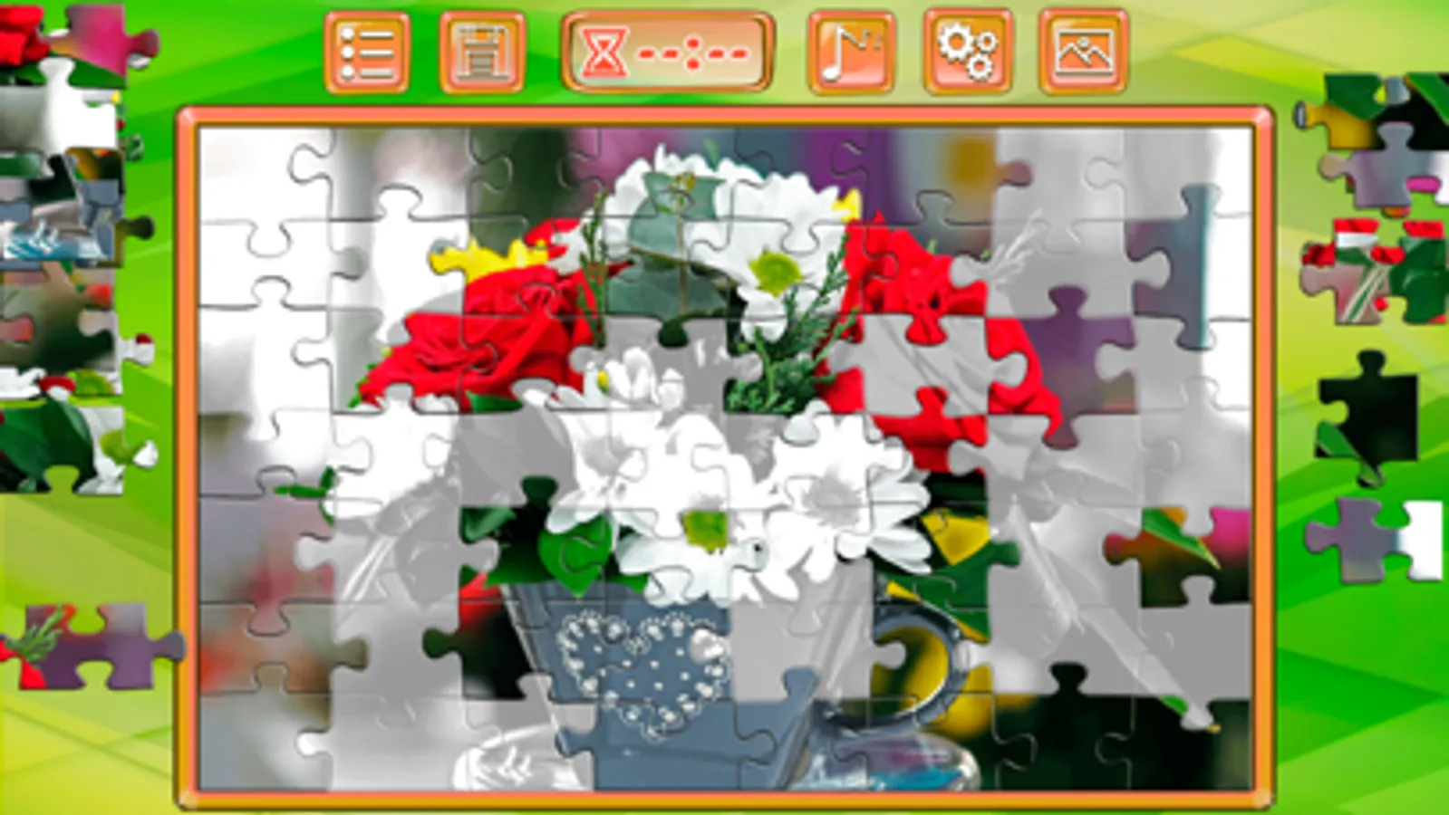 In our puzzle for adults it's very easy to play. You need to choose one of the presented categories: architecture, food, animals, landscapes, transport and others. In each category there are 8 pictures that can be collected. Your task is to move pieces of puzzles and put them in the right place! You can puzzle a puzzle for a different number of details: 56 or 100 pieces. Also, in the game settings, you can always select a difficulty level, including or disabling the background hint to the picture. I think everyone will be able to choose a picture for themselves, because the game has collected 80 colorful images. And still, you can arrange competitions, who will quickly assemble the puzzle, time timer will help you, it will record your results and determine who won. And during the game you can always look at the picture that you are now collecting, in order to understand what place to put a piece of the puzzle. Also, if you need to leave, there is an opportunity to save the game, and continue the next time from the moment you left off.