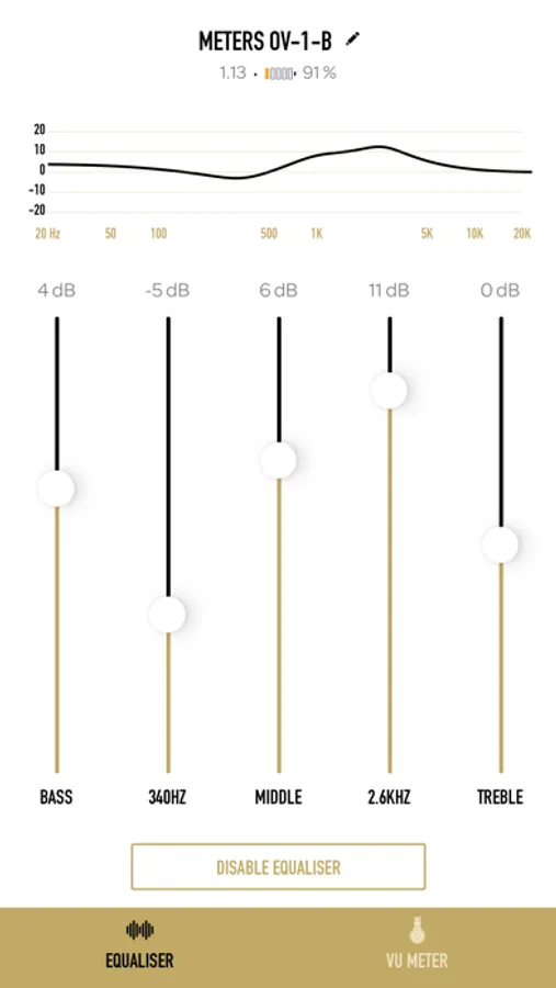 Start the app and put your Meters headphones into pairing mode to connect and unleash their full potential. Tune the equalisation just the way you want it, and adjust the VU meter backlight and colour to match your mood.