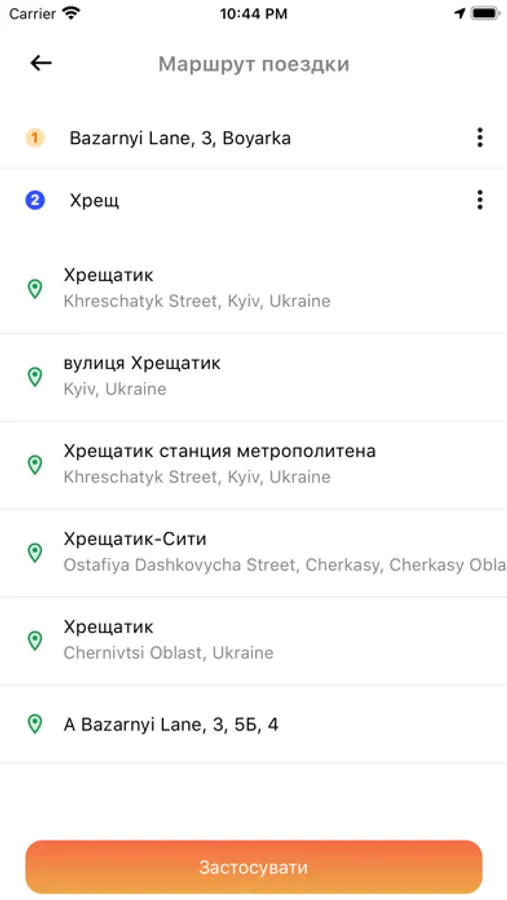 - швидкий пошук адрес, вибір адреси на карті, можливість введення адреси якої немає на карті;