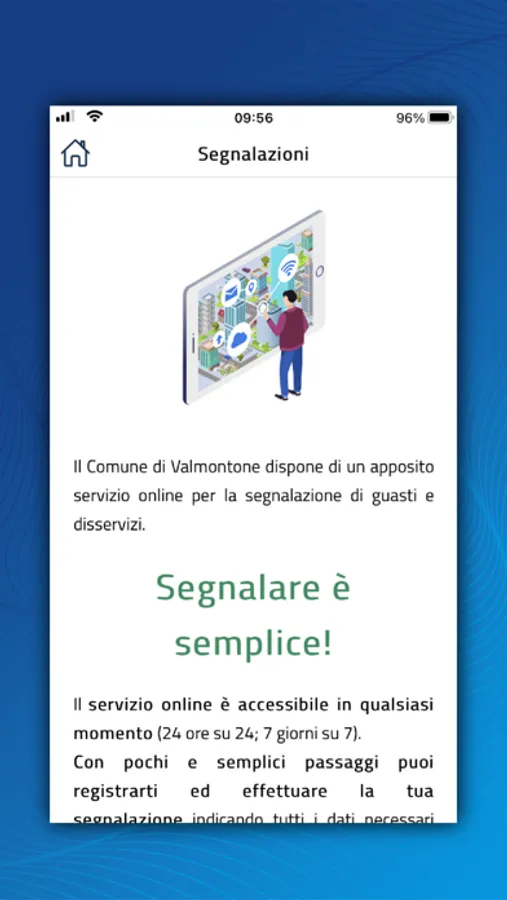 I cittadini saranno immediatamente informati, ad esempio, in caso di emergenze meteo, lavori stradali o chiusure straordinarie degli uffici pubblici e, a loro volta, potranno tempestivamente comunicare al Comune eventuali disservizi o disagi. Le segnalazioni vengono automaticamente indirizzate agli uffici competenti e il cittadino, sempre sul suo smartphone, potrà monitorare in tempo reale lo stato di avanzamento dei lavori.