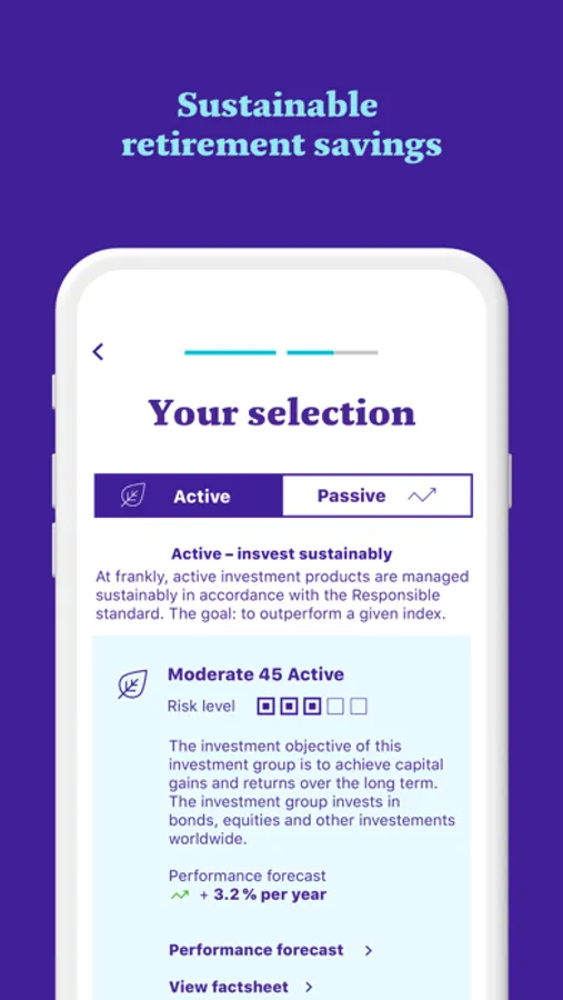With frankly you can manage your 3a retirement planning in the app and check your performance at any time.
