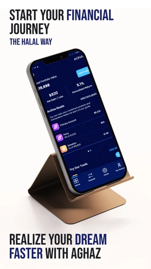 Aghaz is a goals-based investment advisor. You can create up to 10 goals that are important for you and we will optimize your investment strategy for each of your goals. Whether it is your first car or your house, Aghaz will enable you to invest in suitable, professionally managed Sharia compliant portfolios in an automated, mobile and secure manner.