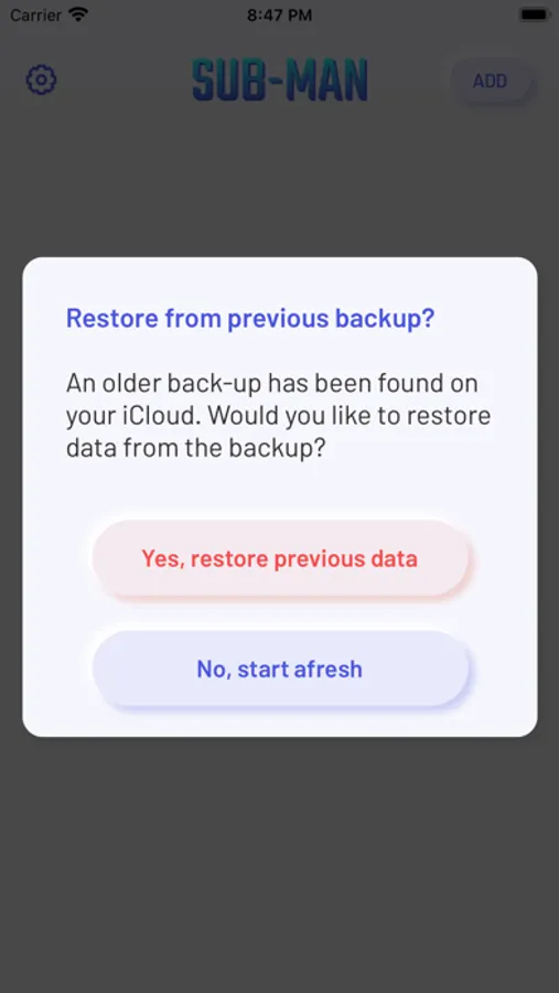 SubMan syncs all your subscriptions into your iCloud Drive periodically so you never lose your data.