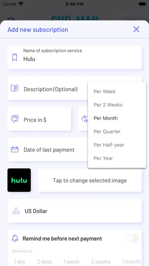 Nowadays almost everyone pays for services on a regular basis. You quickly lose track of how much you are spending on subscription services or recurring bills. With SubMan you can keep an eye on your budget.
