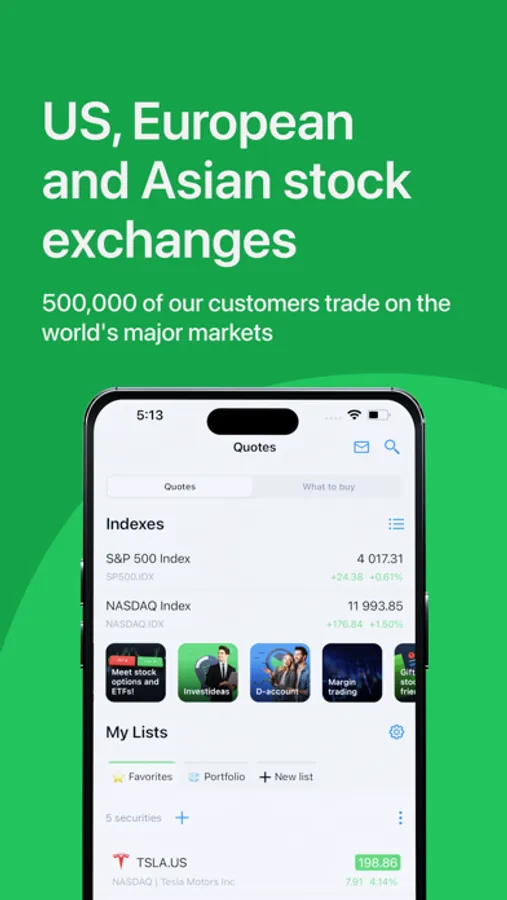 * Exchanges you can trade on include NASDAQ, NYSE, Deutsche Börse, London Stock Exchange, Hong Kong Stock Exchange and others.