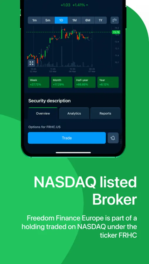 * Freedom24 is Freedom Finance Europe's investment platform with direct access to local and international stock exchanges. You can trade 1,000,000 stocks, ETFs and stock options to create a balanced portfolio of liquid stocks.