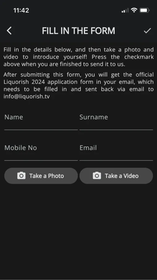 The mobile app allows interested persons to apply to participate in the upcoming adventure. Interested people are asked to fill in their details and upload a short video and photo. They will get a confirmation email upon application.