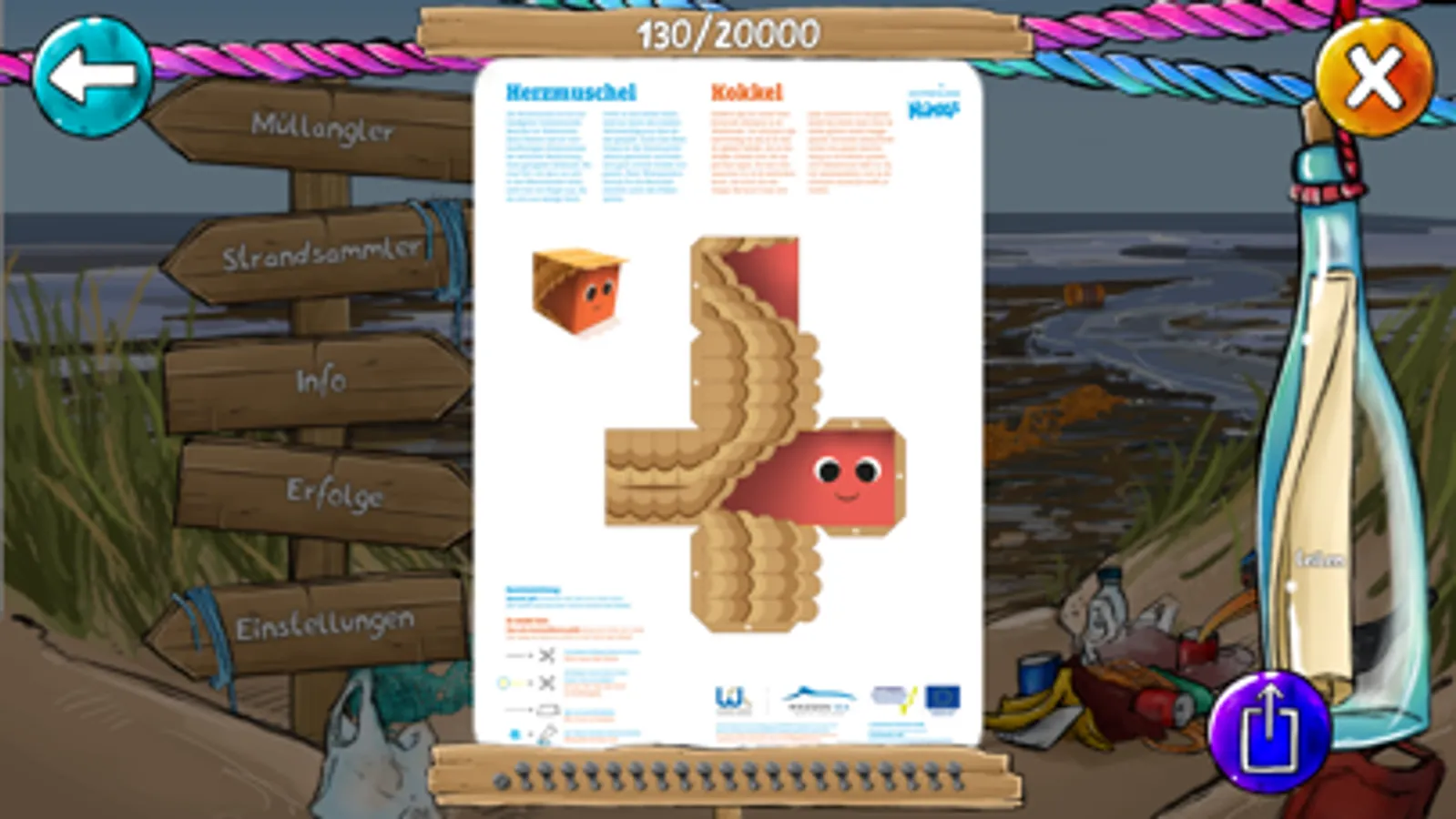 The more you play, the more litter disappears. Additionally, you will unlock success bonuses which you can access at any time. These success bonuses hide impressive pictures or “De Nümigs craft sheets” as well as other exciting information that you can share with your family and friends.