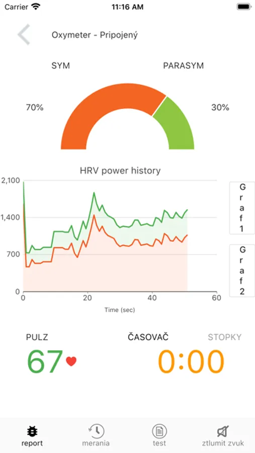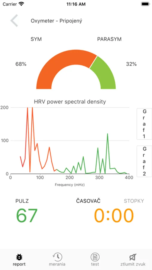 Measurements with using oximeter for course BASE. The application is able to measure HRV and show ANS parameters and HRV power spectrum chart. There is a quiz for the diagnoses ratio of burnout syndrome.