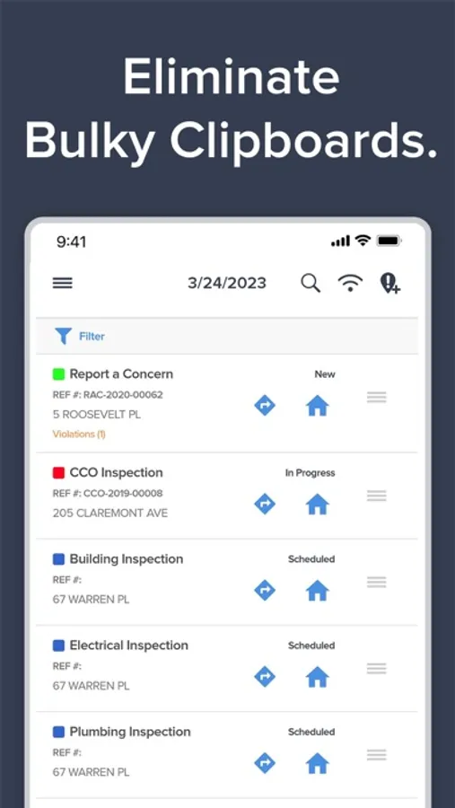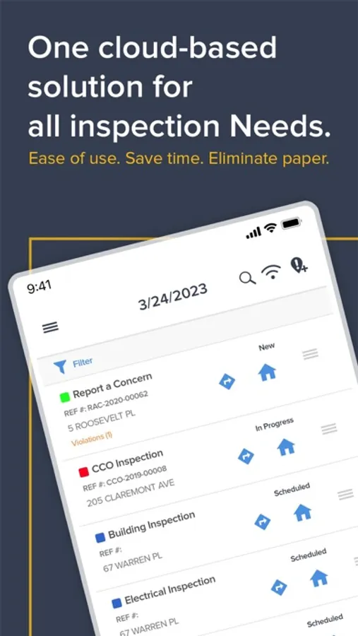 GovInspect App allows you to perform all your inspections from your phone or tablet. The GovInspect App can be used for all your Construction Inspections, CCO Rental/Sale Inspections, Code Enforcement Inspections and Citing of Violations, as well as Work Orders. With the GovInspect app you can hit a simple Navigation button to start direction on how to get to your destination. The GovInspect App also brings the popular Property Profile with you on the go. You can search any address or touch the house icon and see the history of the parcel with all the associated records from all your departments attached. The GovInspect App also gives your the flexibility to report new code violations discovered while in the field as well as schedule future inspections across the different modules.