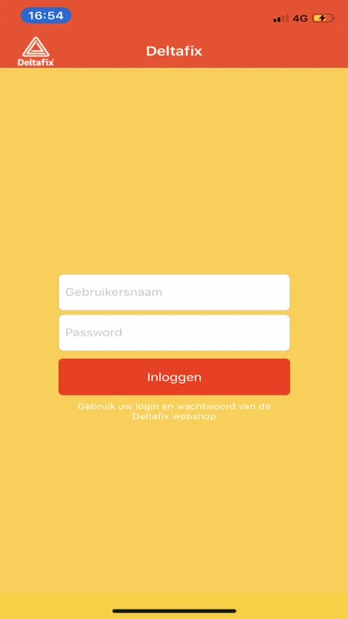 - Log in op de app met dezelfde login gegevens die u gebruikt op de Deltafix webshop.