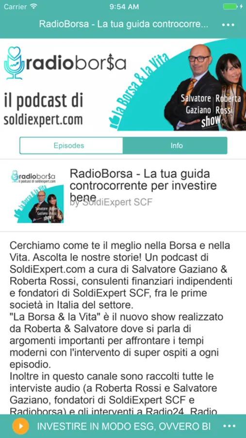 Cerchiamo come te il meglio nella Borsa e nella Vita. Ascolta le nostre storie! Un podcast di SoldiExpert.com a cura di Salvatore Gaziano & Roberta Rossi, consulenti finanziari indipendenti e fondatori di SoldiExpert SCF, fra le prime società in Italia del settore; "La Borsa & la Vita" è il nuovo show realizzato da Roberta & Salvatore dove si parla di argomenti importanti per affrontare i tempi moderni con l'intervento di super ospiti a ogni episodio; Inoltre in questo canale sono raccolti tutte le interviste audio (a Roberta Rossi e Salvatore Gaziano, fondatori di SoldiExpert SCF e Radioborsa) e gli interventi a Radio24, Radio Capital, Radio InBlu.