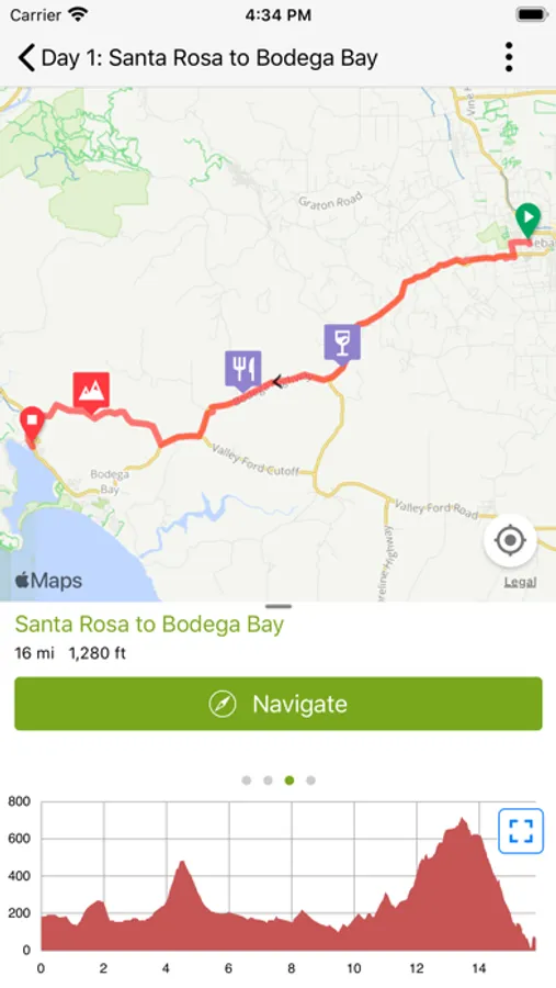 • Interactive elevation profile so you can see exactly what altitude you are at and how many altimeters there are still to go.