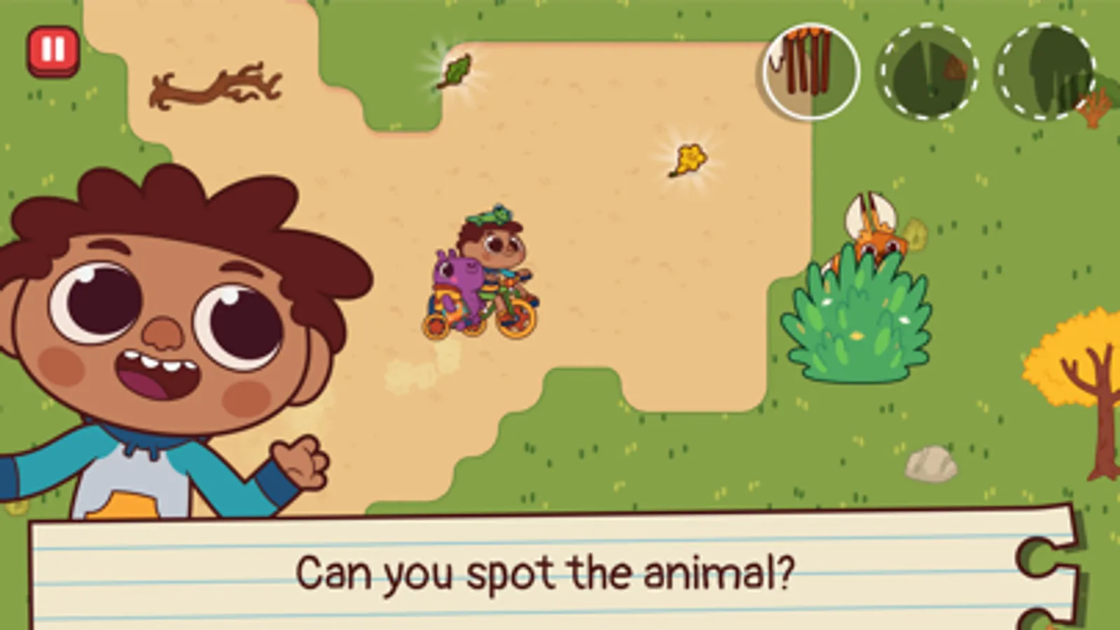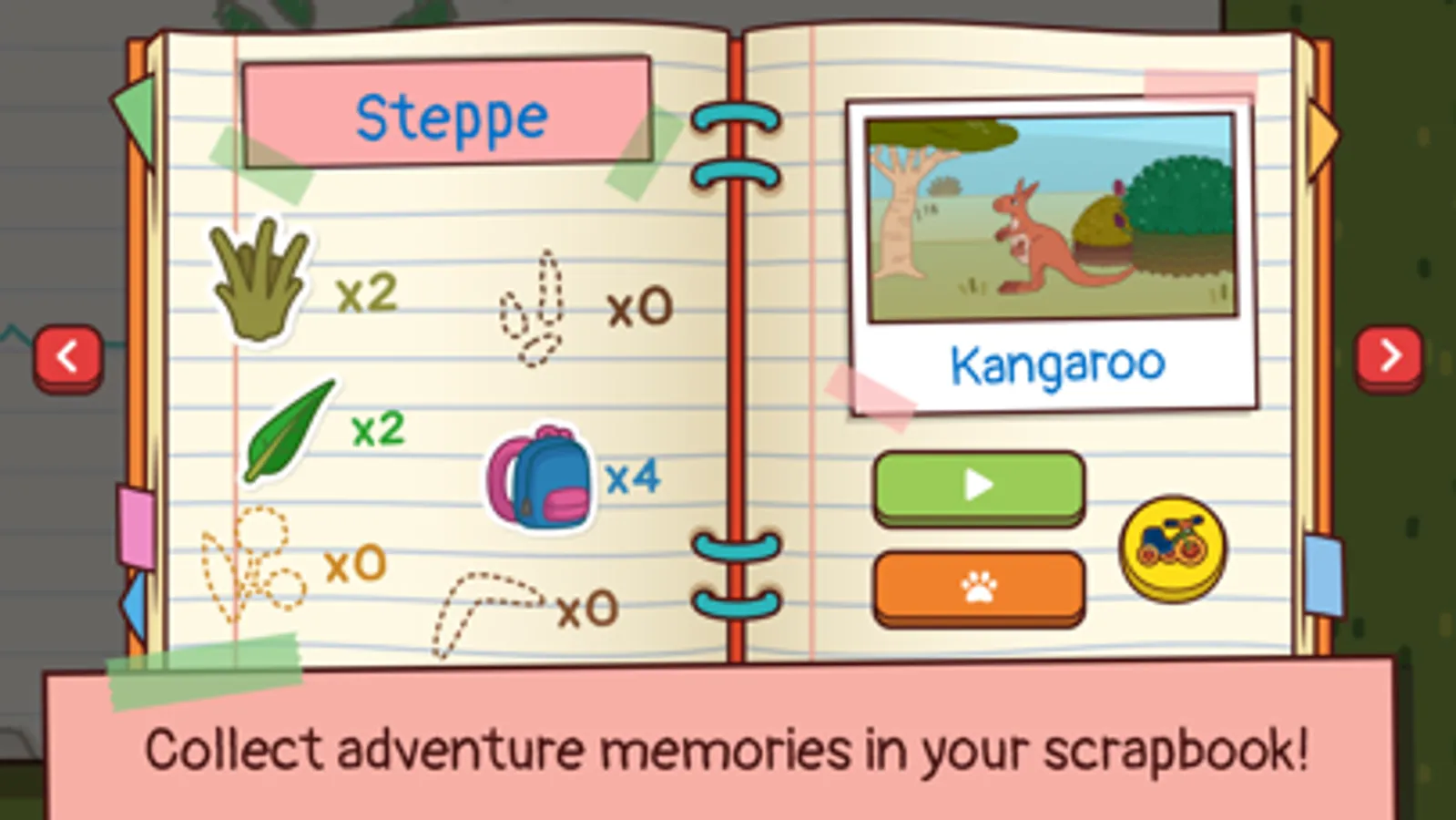 Bio, Capy and Tufo have to find the 15 animals hidden in the various biomes of the world! Keep your eyes open: animals are masters of hiding, but they leave some clues!