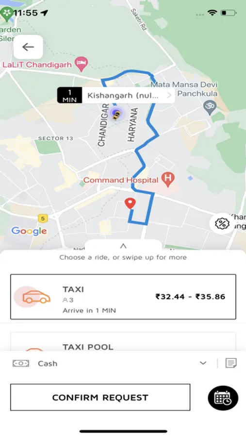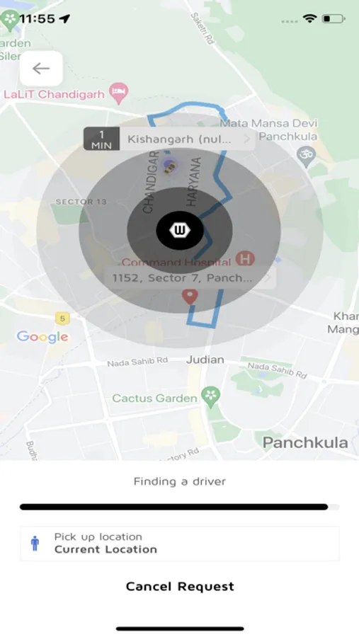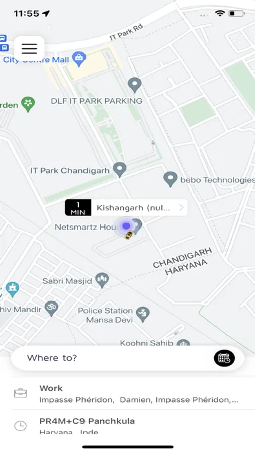 Une fois le lieu de prise en charge entré, le client peut cliquer sur l'icône de voiture en bas pour réserver un trajet.
