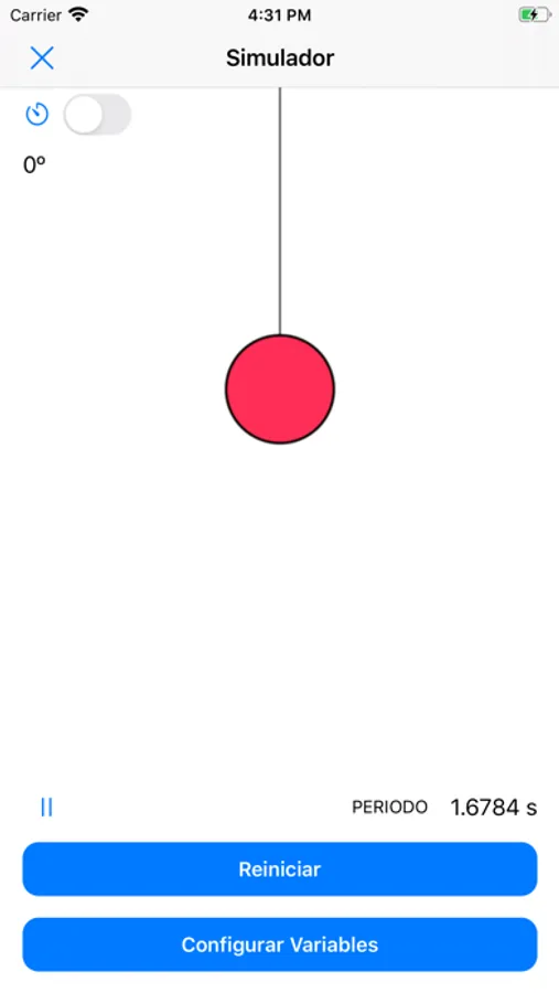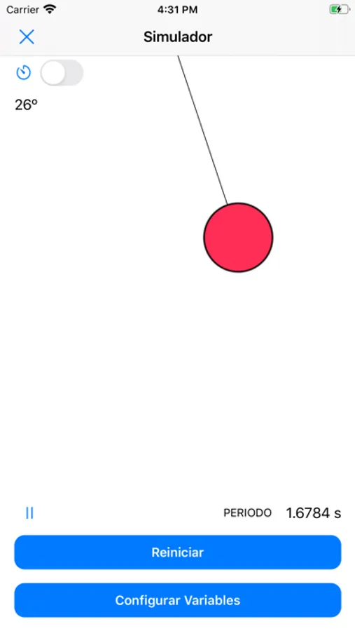 Aplicación de apoyo para el aprendizaje sobre los conceptos básicos del péndulo simple. Muestra de manera animada el comportamiento del péndulo dependiendo de longitud y gravedad, que pueden ser modificadas a criterio del usuario. Realiza preguntas con el propósito de que el usuario practique el cálculo de sus variables.