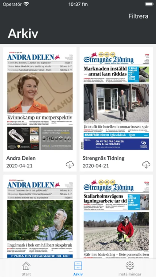 Välkommen till Strengnäs Tidningen. Med e-tidningen får du en digital version av dagens tidning. Du väljer mellan artikelläge eller att bläddra i tidningen. Lika enkelt hämtar du tidigare utgåvor i arkivet. Du kan också ladda ned e-tidningen och läsa den off line, när det passar dig. Med oss följer du alltid det lokala nyhetsflödet, sporten, familj, kultur, ekonomi, näringsliv och mycket mer!