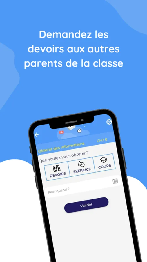 30 secondes top chrono pour demander les devoirs, partager les devoirs, un exercice, ou un événement de la classe.