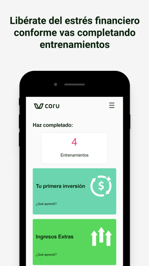 ¿Pensar en tus finanzas te genera estrés? En Coru sabemos que las finanzas personales pueden ser un dolor de cabeza, por eso diseñamos entrenamientos que te ayudarán a recuperar tu tranquilidad financiera.