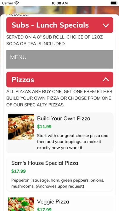 You will love the convenient, at-your-finger-tips Mobile App for Sam's Pizza and Subs.