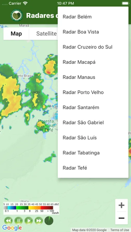 O aplicativo “Radares da Amazônia” permite visualizar, em tempo real, imagens de radar das principais cidades da Amazônia.