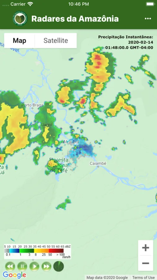 O aplicativo “Radares da Amazônia” traz uma animação das últimas cinco imagens do radar, proporcionando melhor compreensão do avanço das condições de tempo.