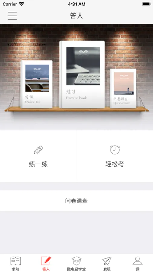 答人模块提供多种练习自测模式,充分满足以练促学的需要;支持轻量级考试的在线开展,不受时间、地点限制。此外,有企业问卷调查功能,员工需求实时掌控。各个模块相互支撑,为企业考试测评提供专业的练考服务,实现随心练习,轻松考试。
