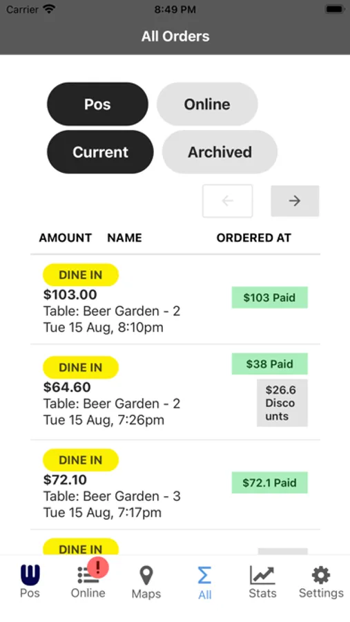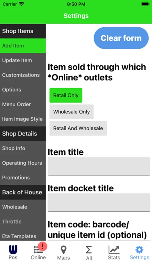 Whoods POS, Online ordering terminal and Back of House app