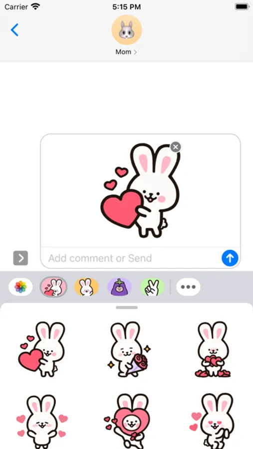 2. Slide to the end of the app bar in Messages, press More (the ellipsis icon), Edit, and press the plus symbol on the left of the Sunny the Bunny app icon.