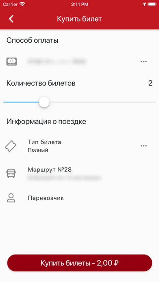 Оплата билета производится через Apple Pay или привязанную банковскую карту.