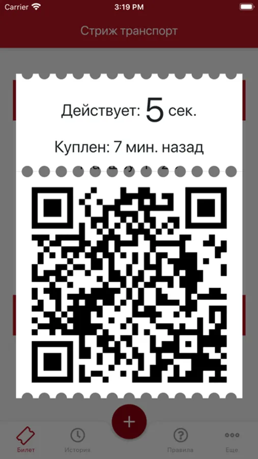 Приложение позволяет купить билет для проезда в городском транспорте по QR-коду.