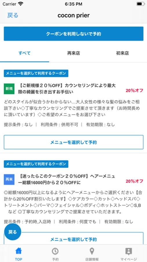 お得なクーポンが配信されます。ネット予約時にクーポン利用での予約も可能なので来店時もスムーズに施術頂けます。