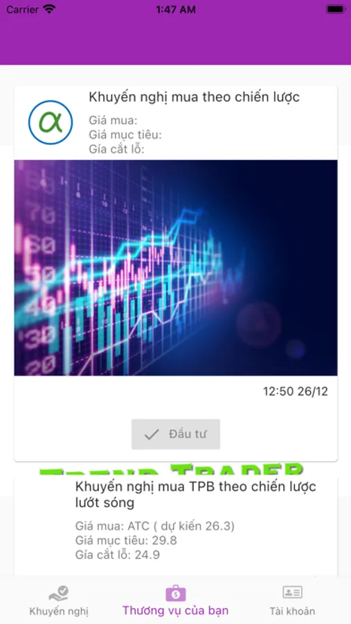 TrendTrader là ứng dụng di dộng cung cấp tín hiệu mua bán chứng khoán trực tuyến ngay trong phiên. Với xác suất thua chỉ ~30% trong năm 2019. Hệ thống TrendTrader sẽ là trợ lí đầu tư hiệu quả của bạn trong 2020.
