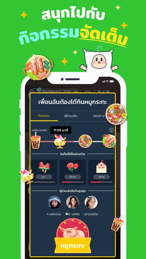 - Event : คึกคักไปกับอีเว้นท์ในแอป ที่ทุกคนสามารถเข้ามาร่วมเล่นสนุกกันได้ บอกได้คำเดียวว่าไม่มีเบื่อแน่นอน