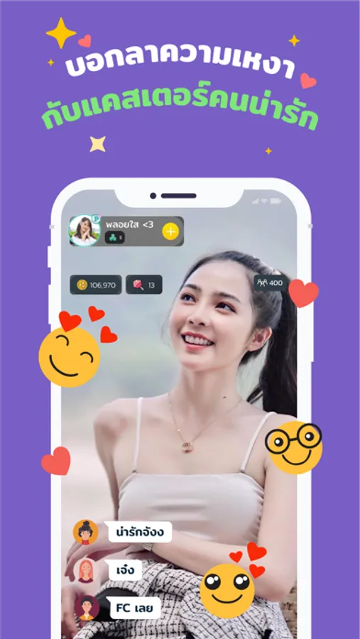 อย่าลืม! มาร่วมสร้างแรงบันดาลใจ ปลดล็อคความเหงา เพียงแค่เปิดใจ และกดดาวน์โหลดแอปพลิเคชันออนไลน์สุดเจ๋งนี้ แล้วไปพบกับกิจกรรมสนุกๆ อีเวนท์คูลๆ ของรางวัลเด็ดๆ และที่สำคัญแคสเตอร์สุดน่ารักที่คุณชื่นชอบกันได้เลย!!