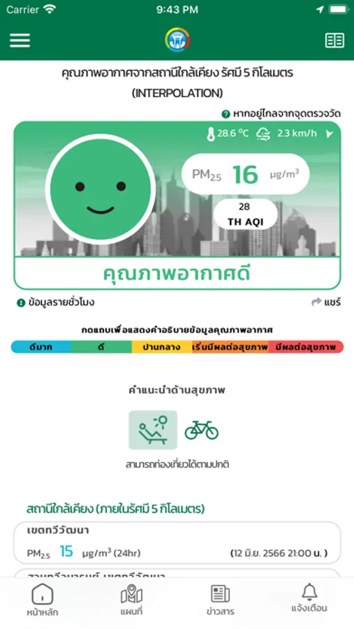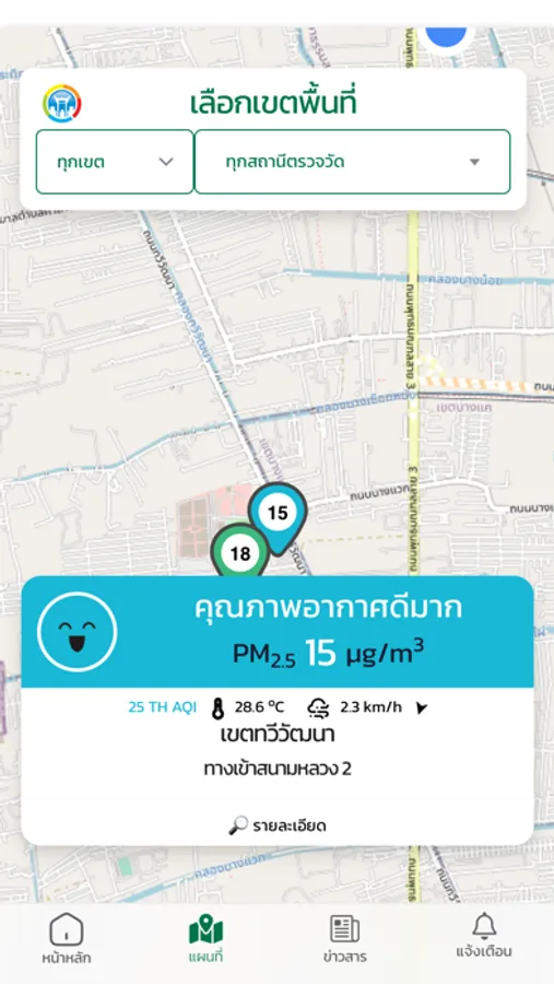 The AirBKK application provides hourly air quality data and forecasts for the next 3 days for the city of Bangkok, Thailand. The data is collected from monitoring stations throughout Bangkok and the forecasts are generated by the WRF-Chem air quality model.