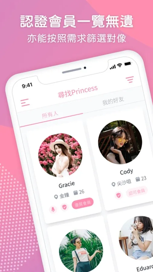 嚴格的會員審查制度,三項認證功能,聚集有誠意的大方男士,尋找他們心目中的公主。