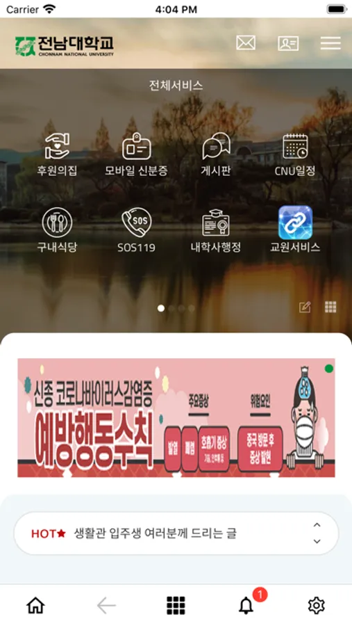 교수, 학생 등의 신분별로 아르미, e클래스, 게시판, 도서관, 일정, 학사정보 등의 다양한 서비스를 제공합니다.