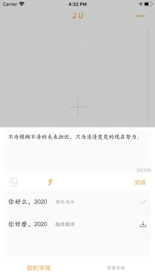 「2U」,使用 “to you” 的谐音,可以让你将祝福、人生感悟、励志感言送给“你/我/他/她”。