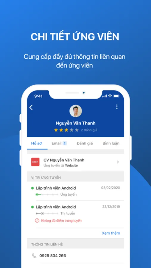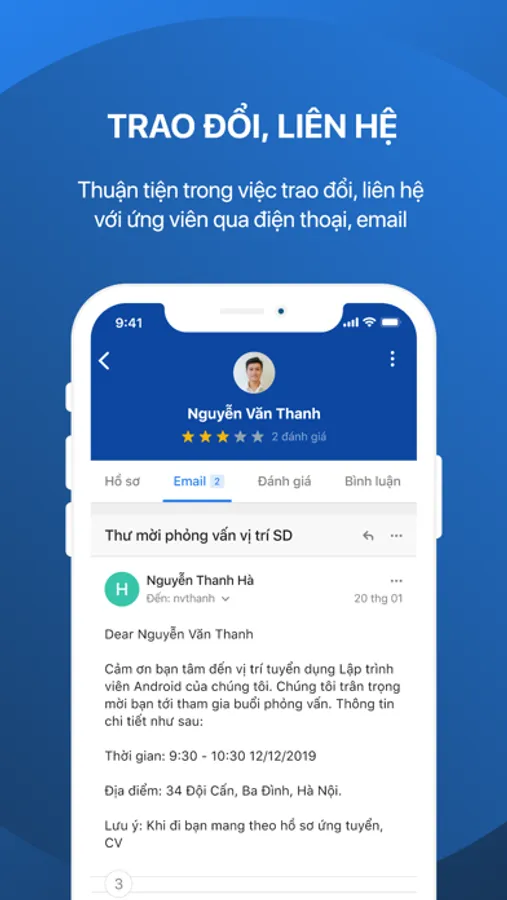 • Gọi điện, gửi email cho ứng viên ngay trên thiết bị di động.