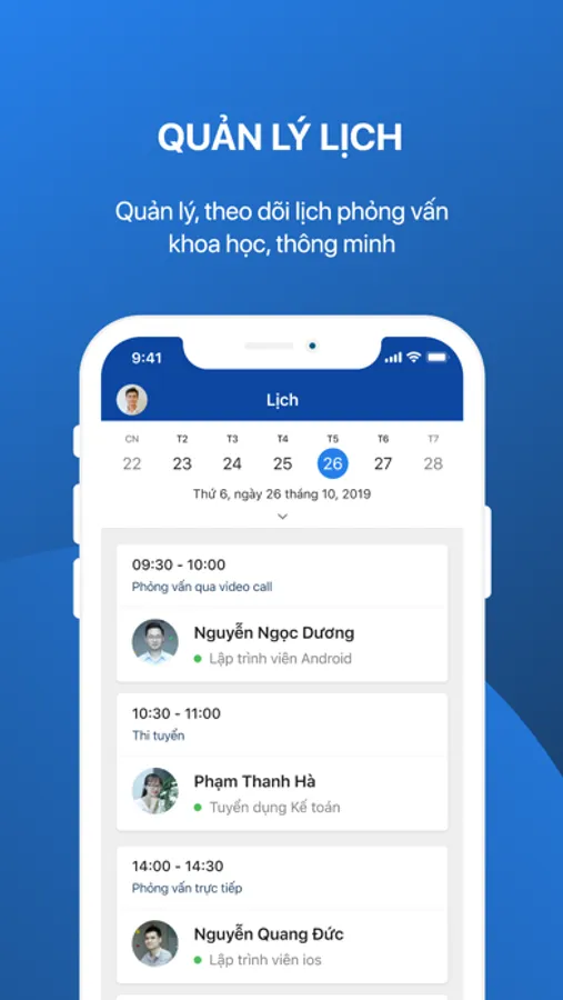 • Theo dõi và quản lý toàn bộ lịch phỏng vấn của cá nhân.