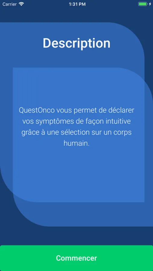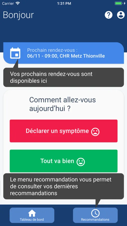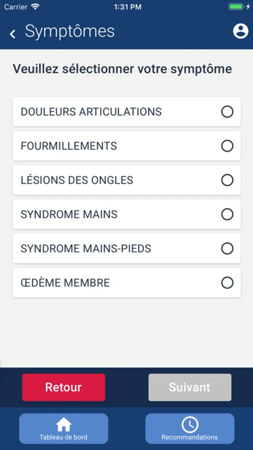 Application numérique destinée à la gestion par les patients des effets indésirables de leur traitement anticancéreux : conseils, recommandations, prise de rendez-vous de consultation, ou appel au SAMU selon le niveau de gravité identifié.